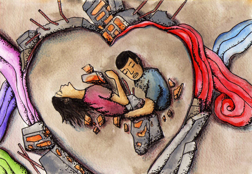 Los amorosos abrazados eternos. Murieron así, con una fábrica ilegal (en Bangladesh) encima de sus cuerpos, sepultados, estrujados, con sus esqueletos y cuerpos reventados.