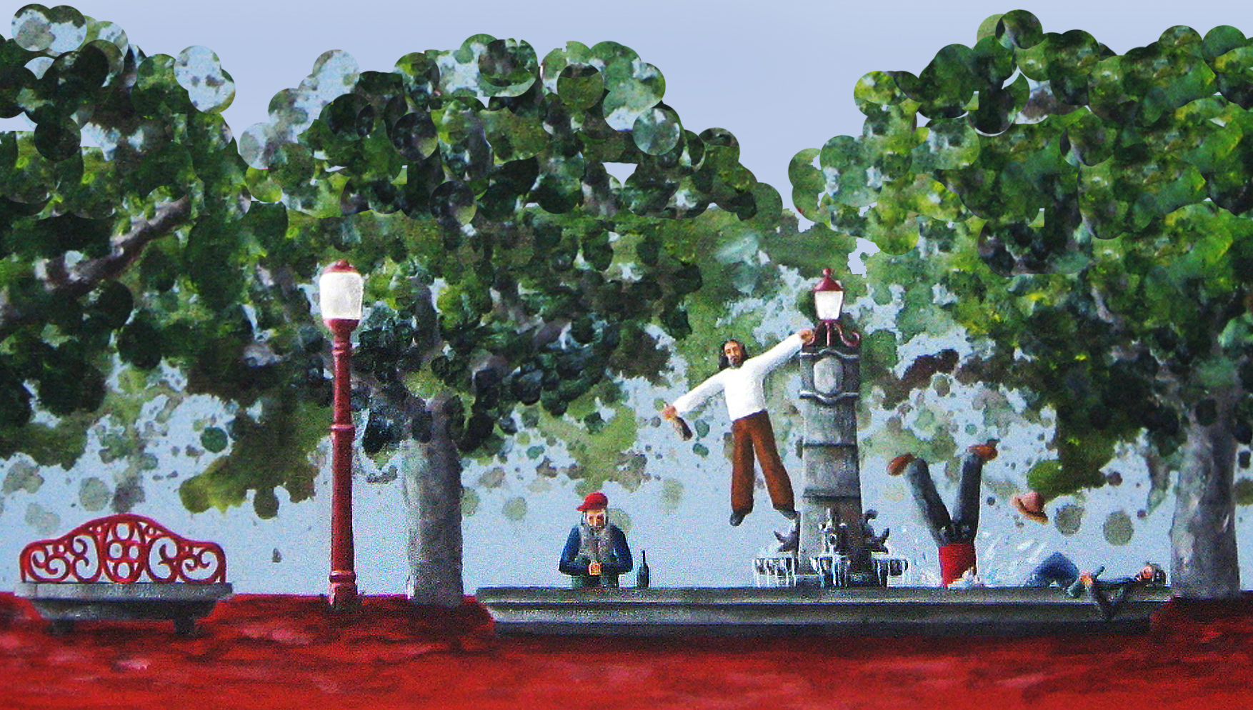 El 7 de agosto, habrá una fiesta de reinauguración de la plaza, es una iniciativa de los vecinos. La respeto, pero no la comparto. Yo en lugar de celebrar, propondría un día de luto, en recuerdo de: la tranquilidad, la contemplación, lxs yonkis, lxs abueliñxs, y lxs desempleadxs que se posaban en los alrededores de la fuente y de los jardines. Luto por los árboles, por los hermosos charcos que se formaban, la maravillosa arcilla y Divina con sus coloridos calcetines sentada frente a la iglesia.