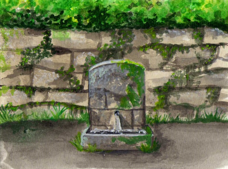 30 años después la fuente sigue ahí, seca, un trozo de piedra con hierbas, casi sepultada por capas y capas de asfalto.