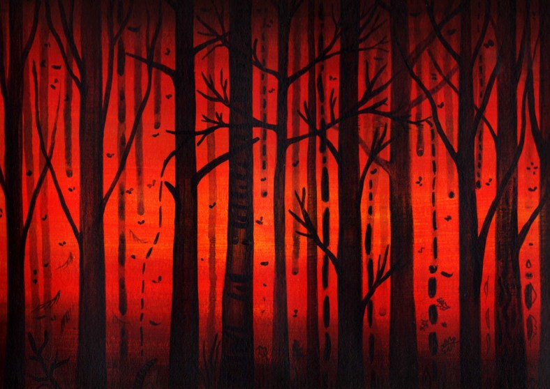 Pinté «Arde el cielo» cuando quemaron parte de Xiabre, y esta ilustración que veis ahora la pinté en octubre de 2017 cuando se respiraba humo en todos lados y se leía en redes «Queiman Galicia». Detuvieron el fuego, nos concentramos en las plazas y ya mejor nos fuimos olvidando, hasta que volvió a tocar cerca, como siempre. La aparente sensibilidad disfrazada de egoísmo cuando las llamas se acercan a tu casa. Ya después, miramos para otro lado y seguimos contaminando lo que pillemos por delante.