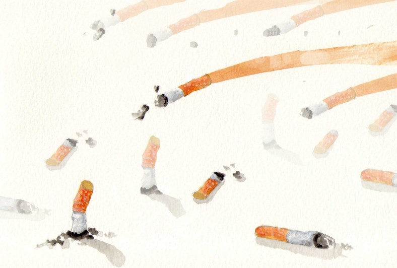 Según un estudio alemán publicado en 2014 en la revista Journal of Hydrology, una colilla puede contaminar hasta 1.000 litros de agua con unas concentraciones de sustancias químicas superiores al umbral límite de toxicidad concentrado en un ecosistema (o concentración prevista sin efecto, predicted non-effect concentration, PNEC).