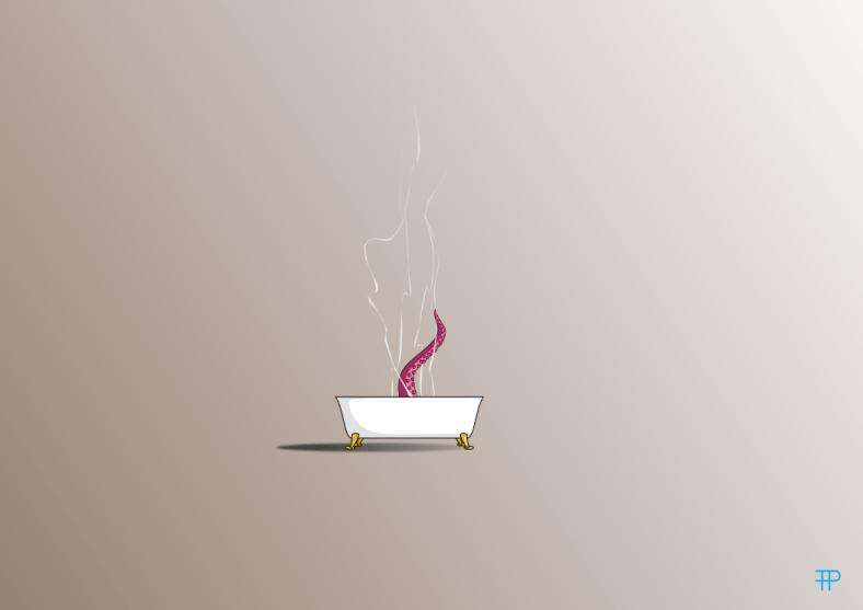 Un día cualquiera llegas a casa después de una jornada lluviosa y al encender la luz del baño la ves. Está ahí, ante tus ojos, una criatura monstruosa moviéndose en la bañera vacía sin percatarse de tu presencia, tan campante. Te das cuenta enseguida que el miedo te ha paralizado, no te puedes mover, ni siquiera gritar; así que después de un instante de pánico consigues calmarte y acabas sentándote en la taza del váter dispuesto a negociar con el bicho hasta conseguir solucionar el problema. Pero solo asoma un viscoso tentáculo por el sumidero visiblemente roto.