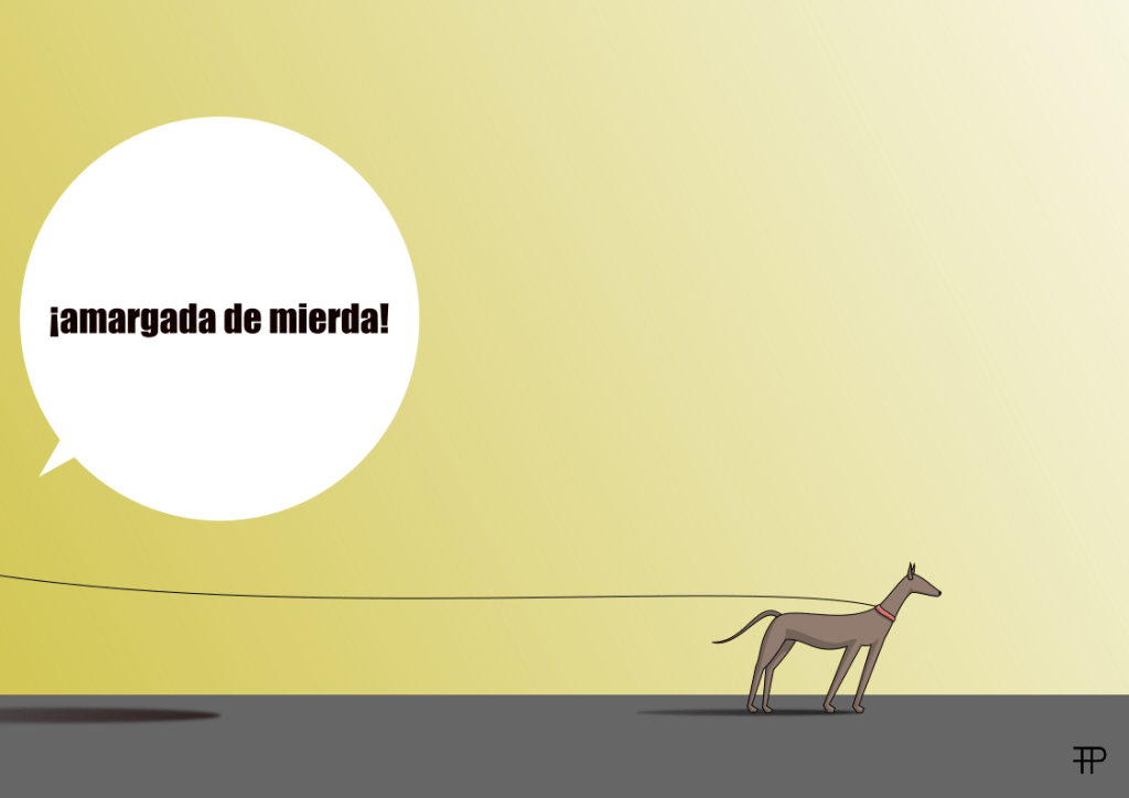 Continué paseando y acabé en una de esas grandes tiendas que rodean la Plaça de Catalunya y que venden desde cafeteras y televisores, hasta libros, y en la que hice, casi sin detenerme, un rápido recorrido por la sección de libros. Me subí a las escaleras mecánicas para salir de la tienda y escuché un griterío detrás de mí. Una pareja de veinteañeros, así, muy alternativos ellos, de pose, claro, con un perro todo mono que movía el rabo y miraba a sus amos con la lengua colgando sin entender nada, increpaba a la mujer racializada de uniforme por no haberles dejado entrar con su mascota. En concreto, fue la chica quien se encaró con la empleada de seguridad y quien pronunció las dos palabras que lo rompieron todo: “¡amargada de mierda!”.