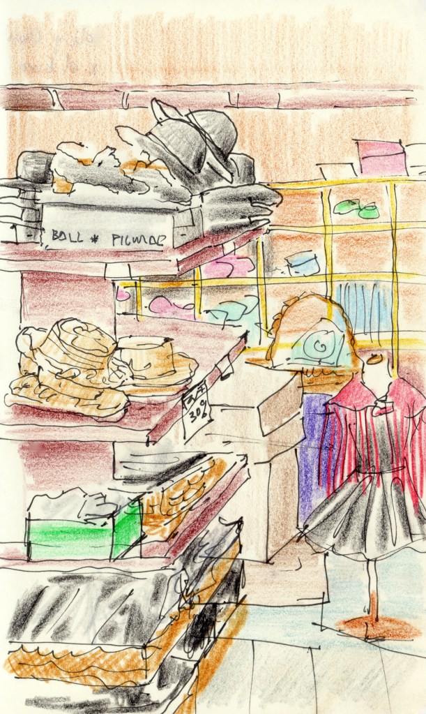Buscaba un precioso pañuelo para regalárselo a mi abuela materna, a ella le encanta ponerlos en el cuello, en ese entonces, yo llevaba viviendo aquí en Galicia poco más de tres años y siempre me había llamado la atención una tienda ubicada en la esquina de Gumersindo Nartallo y C. Cervantes, llamada «Carriola». Vendían toda clase de ropa y accesorios para danza galega, ballet, flamenco y otras disciplinas de baile, por lo que tenían pañuelos muy lindos. Le compré uno para mandarlo por correo. Supongo que para navidad o para su cumpleaños, no recuerdo.