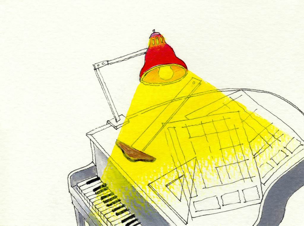Usaba su piano de mesa de dibujo, de restirador, también sabía pintar, según cuenta, se le daba bien desde pequeño. Nos insisitía en tener varios oficios, porque no siempre se puede vivir de la arquitectura, va por temporadas. Durante un tiempo se pagó su estancia en Reino Unido con la pintura, mientras unas nobles británicas lo hospedaban en su castillo, entre fiesta y fiesta de la realeza, hacía retratos de la farándula, que pasaba por aquellos salones.