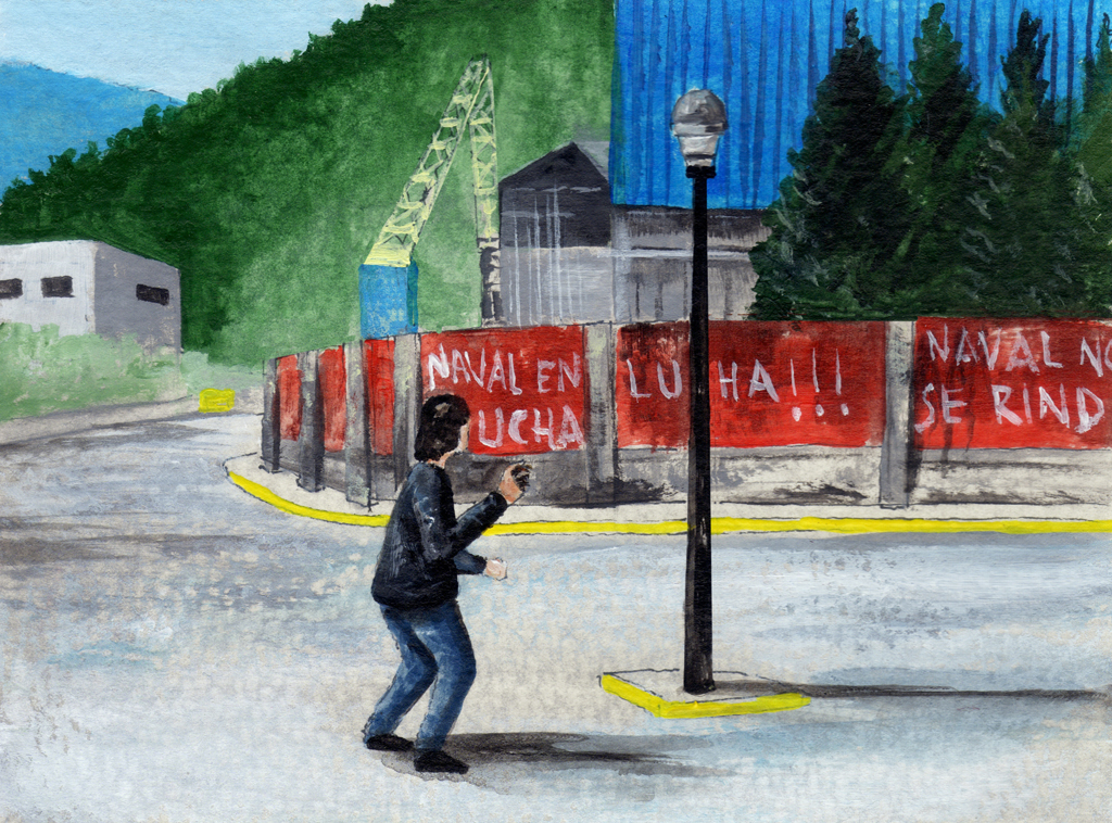 Toda esta zona relacionada con el mar, vive constantes crisis, con sus consecuentes movilizaciones. Yo he visto la de las trabajadoras (siempre son mujeres) de la conservera Cuca, o las de los obreros y obreras de Lantero (empresa de cartones). Recuerdo cómo la gente de Lantero detenía el tráfico en los pasos de cebra, haciendo que los coches de sus jefes no pudieran pasar, se formaban uno tras otro para cruzarles el paso, en una marcha eterna. Me hizo mucha gracia el ingenio y me conmovió su organización y el apoyo del pueblo que ellos sí tuvieron.