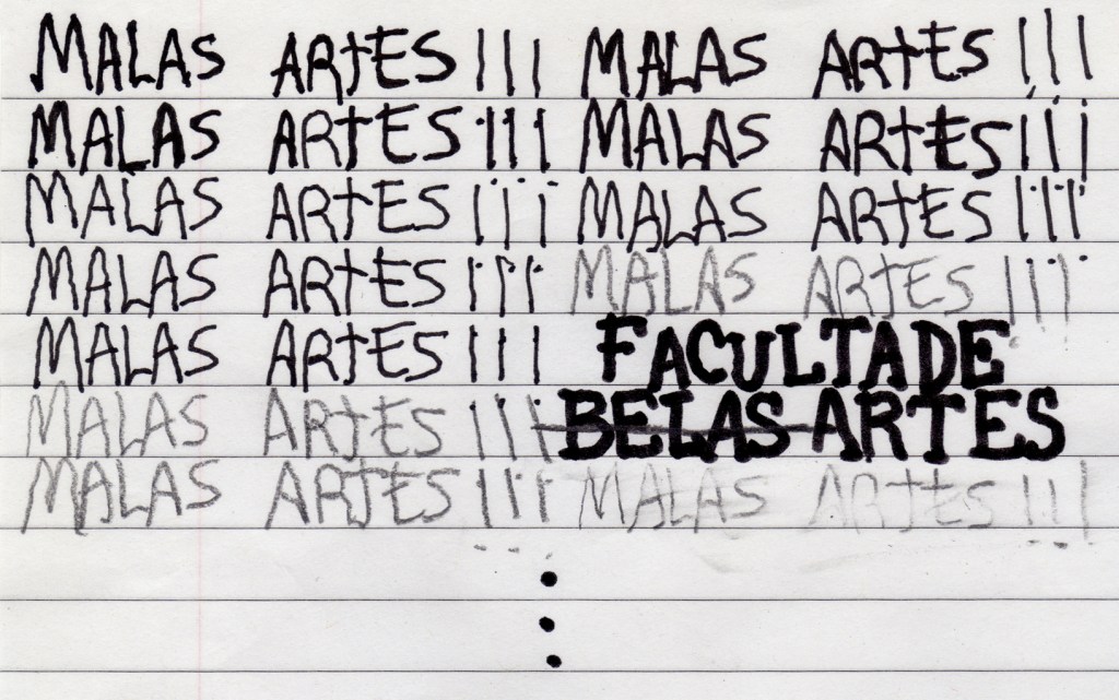 Por eso, cuando vi la intervención de la fachada de esa escuela, que hizo su recién graduado Jerry Ruiz Barzola, habiendo tachado la palabra «Belas» del rótulo que dice: «Facultade de Belas Artes de Pontevedra» y, abajo con spray, añadiendo la leyenda «MALAS ARTES», pensé en lo de acuerdo que estaba con ese mensaje.