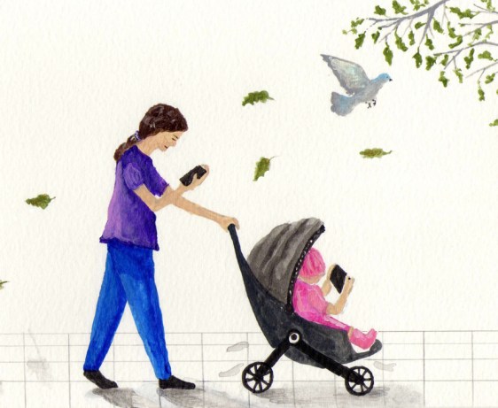 Paseo de mamá-móvil y beba-tableta